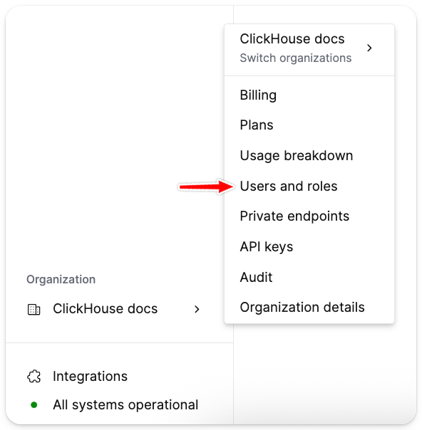 2. When the user logs in to ClickHouse Cloud they will automatically be assigned the Member role which may only log in and has no other access