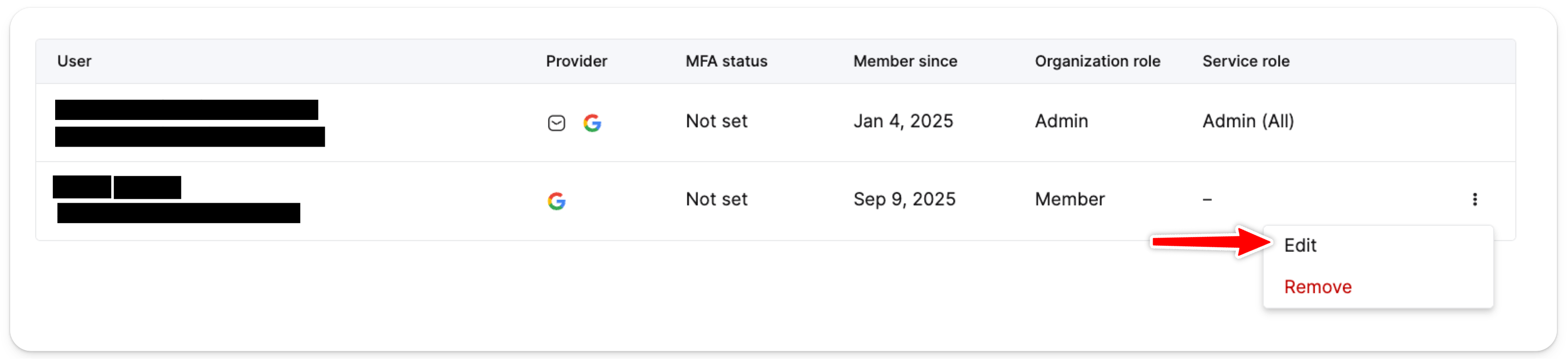 3. Click the three dots next to the user's name and select Remove